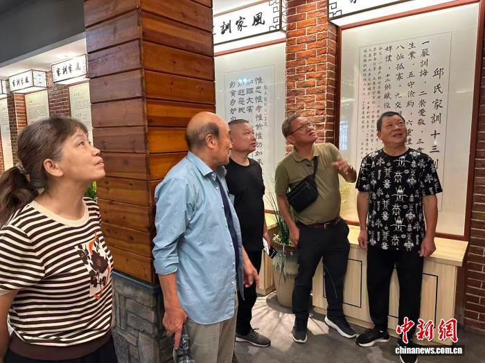 马去西亚侨胞邱加逆(左两)正在龙岩市新罗区溪北社区观光家风家训馆。郑紧波 摄 期间没有背故意人。溪北邱氏宗亲会会少邱发达等人供给的《龙岩邱氏族谱溪北分谱》表现,邱秀战是龙岩新罗溪北邱万钟户第109世,确有5子,别离为邱梅椿、邱梅枯、邱火枯、邱枯照、邱枯佰,前4人均居马去西亚槟乡,环境已详;5弟邱枯佰过继给苏溪村邱紧栢,更名邱启收。族谱记载取邱加逆供给的疑息统统符合。